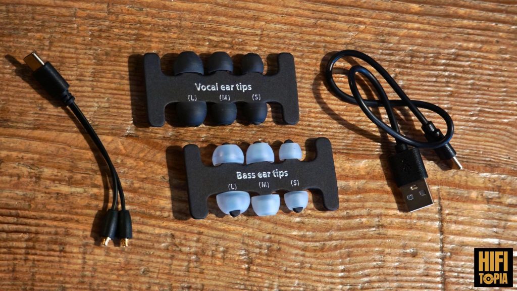 You can charge the earpieces via MMCX using the Type-C to MMCX cable included in the box. It’s a promising feature, but I can’t help but wonder, what’s the point? They could have just included a cheap MMCX to 3.5mm cable in the box instead. It feels like someone on the R&D team said, “Hey, I can do this!” and they just threw it in without thinking.