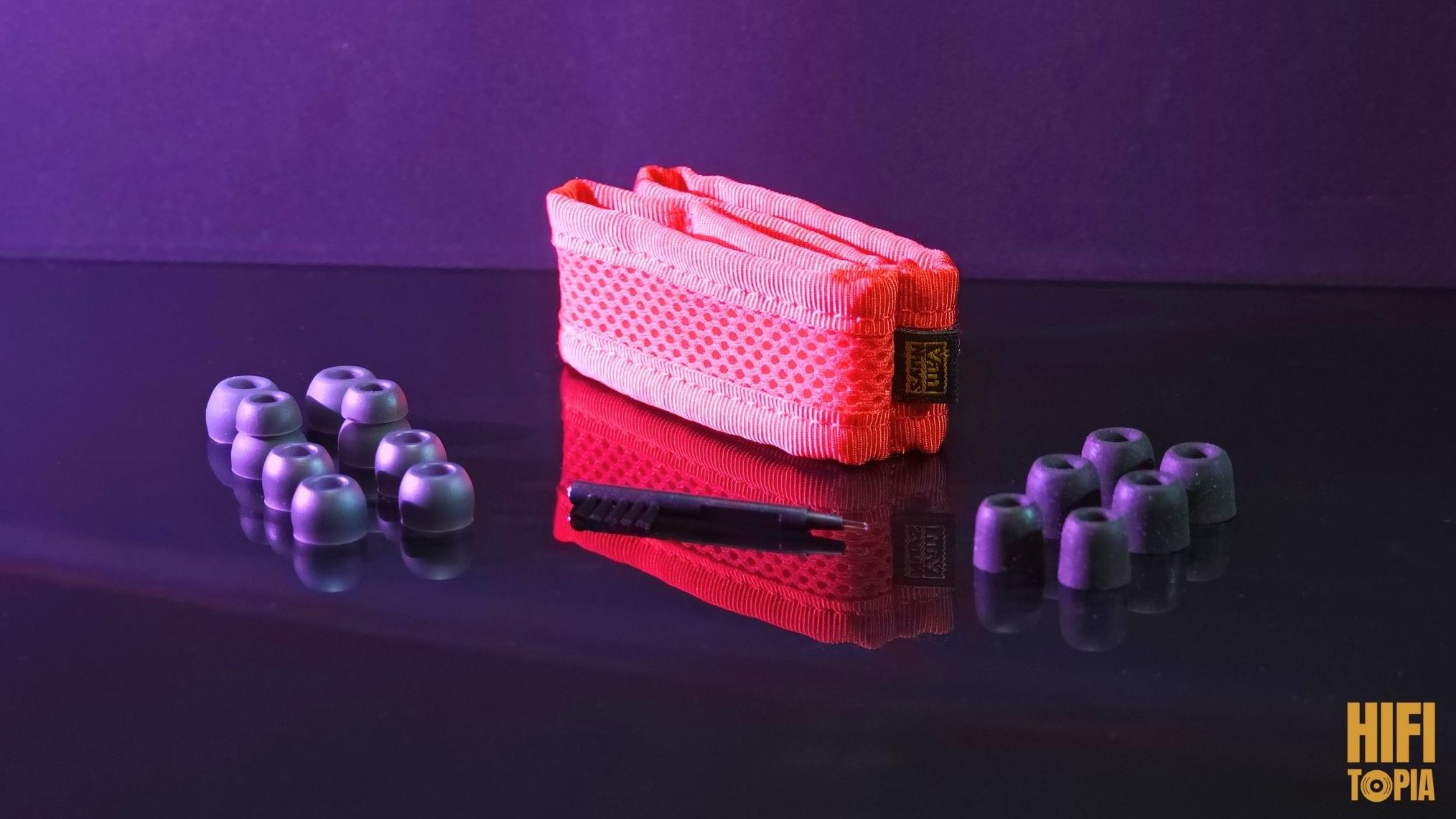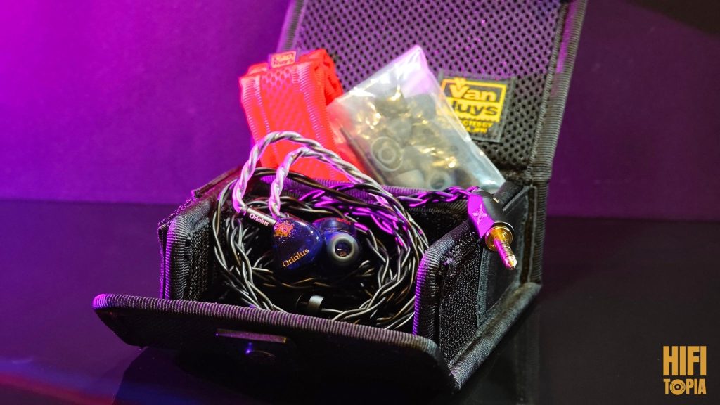 Out of a simple cardboard box comes a highly functional and decomposable hard case. I was excited to see this Vannuys box for Oriolus. This is one of the best boxes you can get together with an iem. Inside there is a separator that can be moved and makes the box into two compartments. All other contents are also included in this box. Monachaa comes with a wide mouth, sponge and layered tips. I love these wide mouth silicone tips, they are very good. Other than that, the box comes with a cleaning brush, a clip and a red thing that I think is a cable separator. Honestly, I still can’t figure out what this red ringed fabric is, but I keep it in the box to keep the two shells separate.